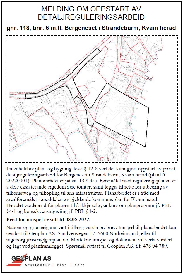 Detaljreguleringsplan - Varsling av oppstart regulering