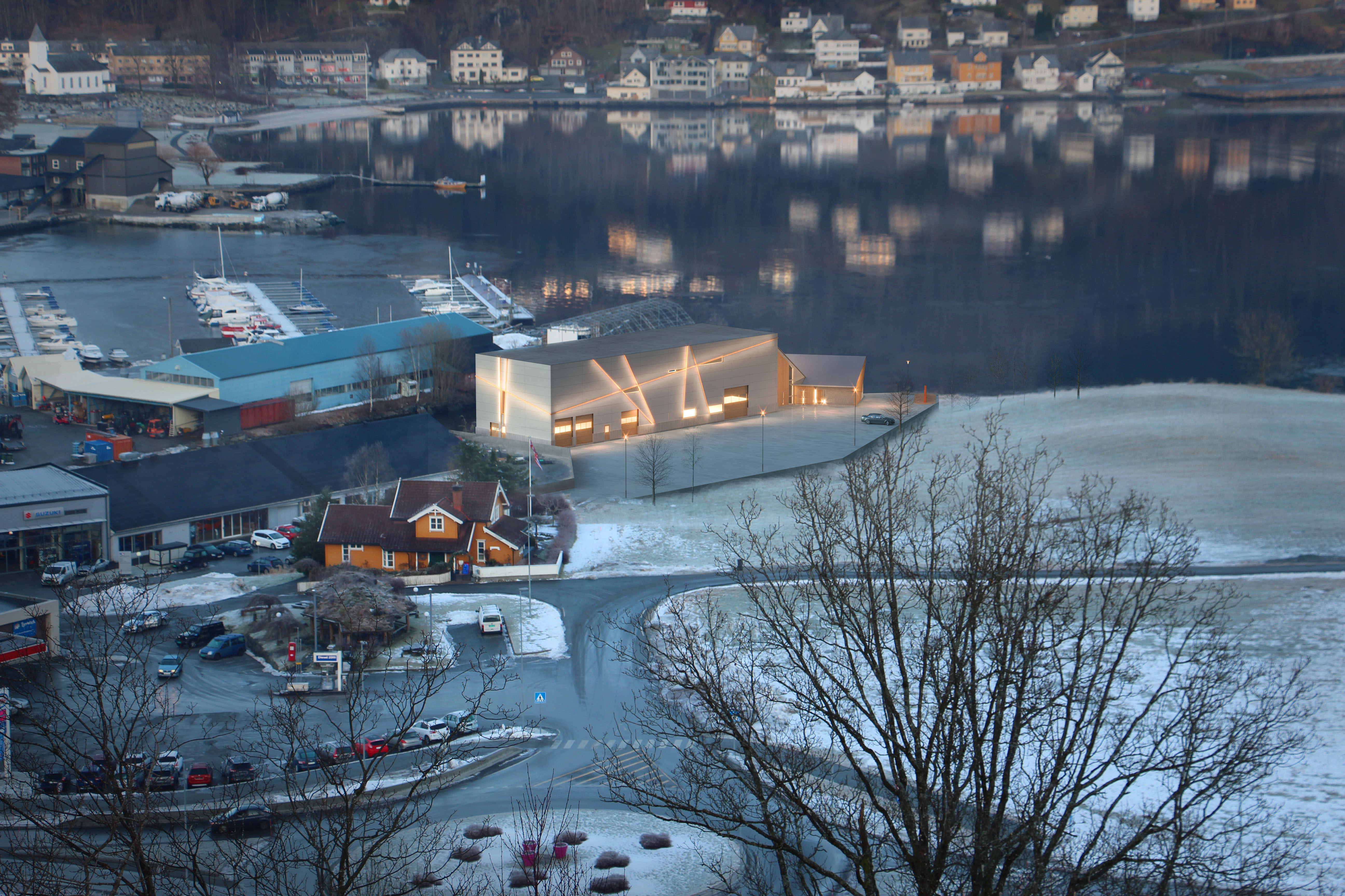 med tilhøyrande uteområde og infrastruktur.